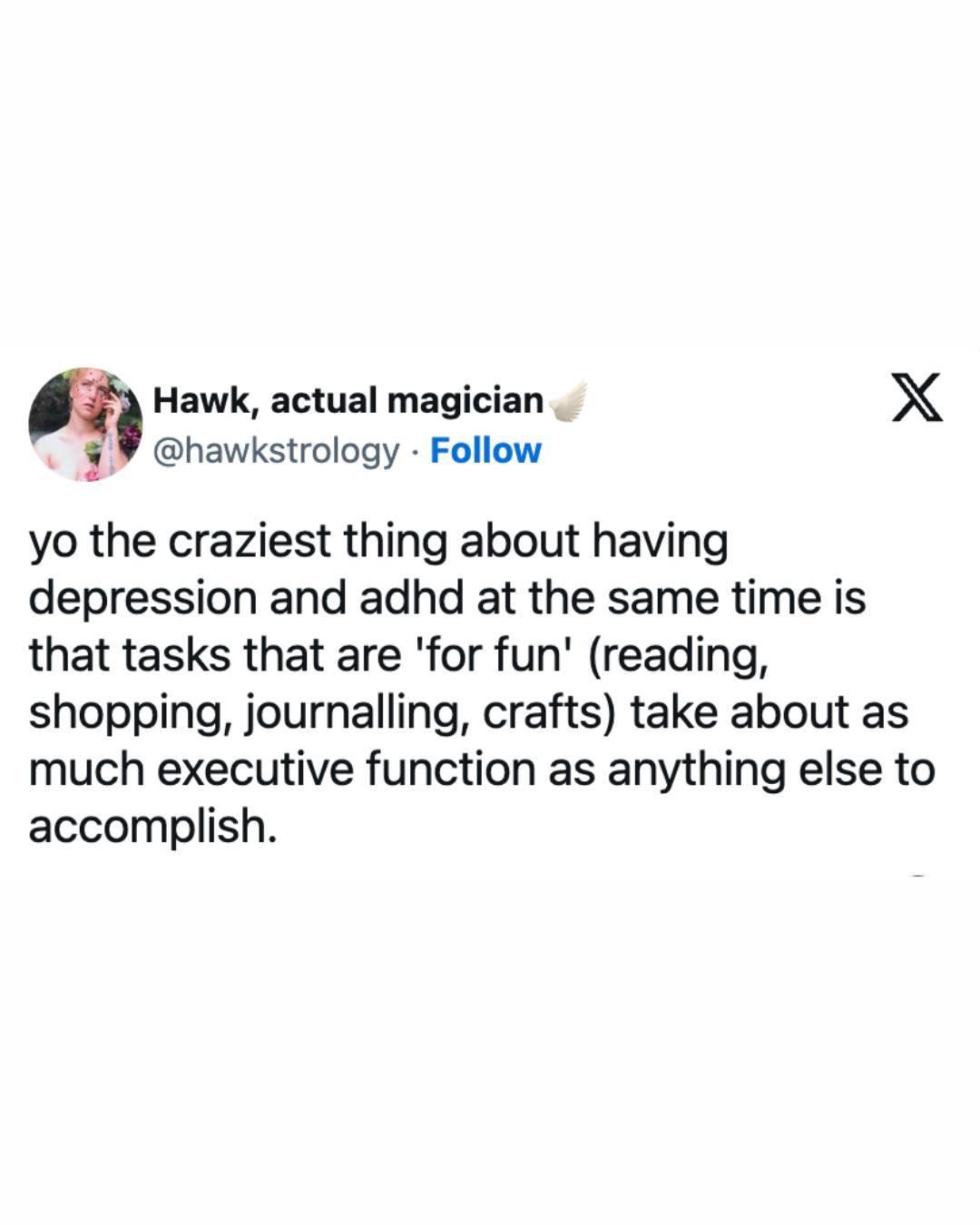 Felt this in my chest…had a window of my life where things were so rough I was basically ordered by my therapist to take seek medical treatment for both, and even with treatment existing felt like a chore…couldn’t even will myself to look at memes when I woke up. Basically just laid in bed with my eyes closed for half the day for a while. Getting to the point where I could properly take care of myself again was very much a recovery process.