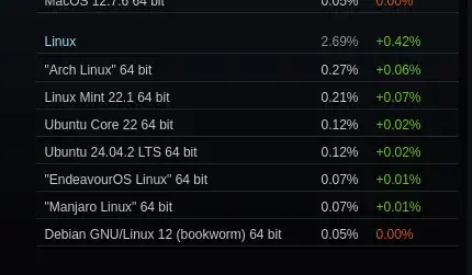 arrow-up1472arrow-down1external-linkLinux continues its rise in Steam Surveywww.phoronix.comherseycokguzelolacak@lemmy.ml to Linux@lemmy.mlEnglish · 6 months agomessage-square60linkfedilinkfile-text