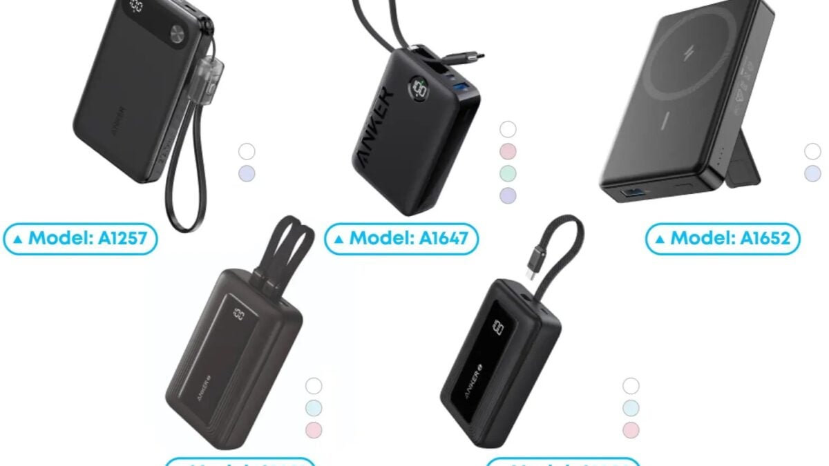 - Anker Power Bank (20,000mAh, 22.5W, Built-In USB-C Cable) — Model A1647