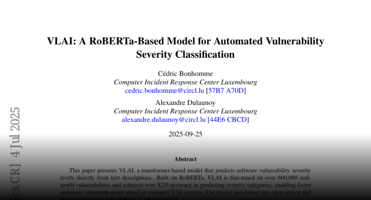 cm0002@programming.dev to cybersecurity@infosec.pub · 5 months agoVLAI: A RoBERTa-Based Model for Automated Vulnerability Severity Classificationplus-squarehuggingface.coexternal-linkmessage-square0linkfedilinkarrow-up13arrow-down11